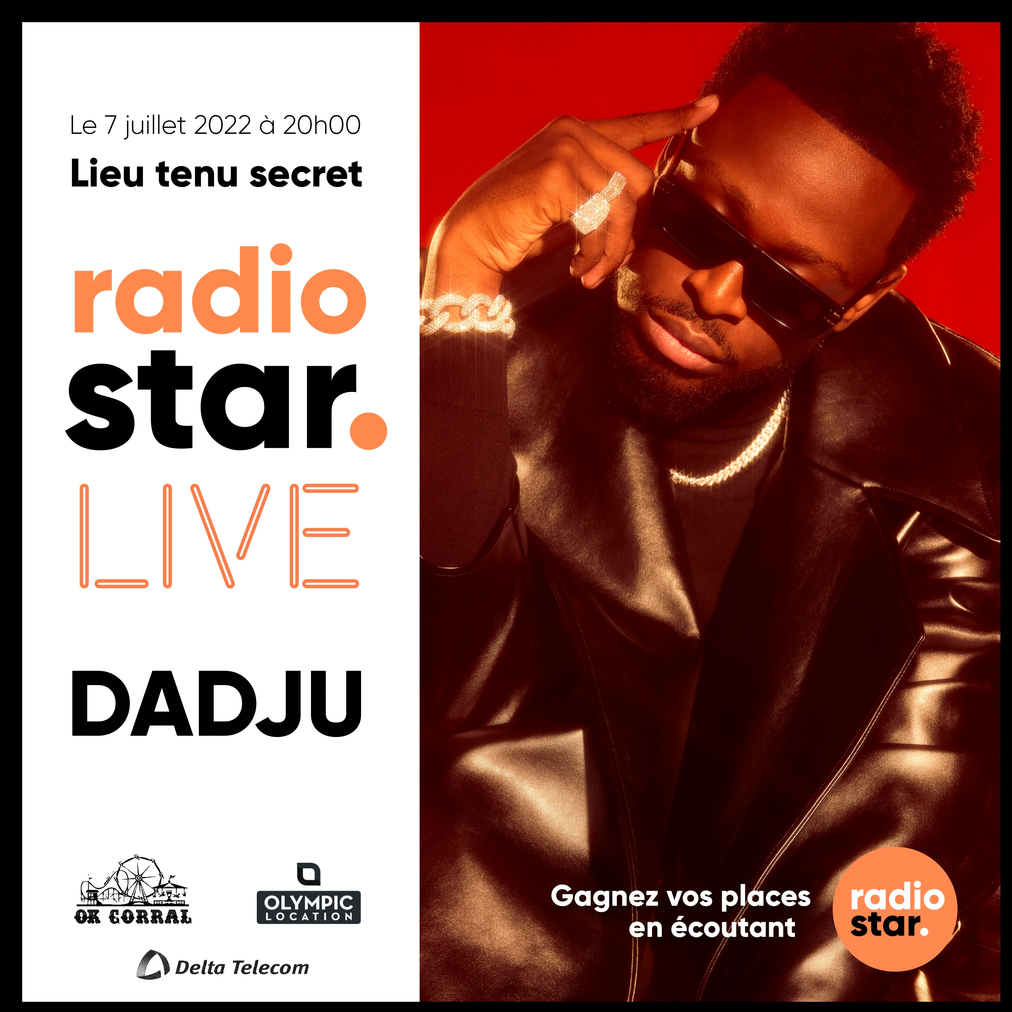 On a tous fredonné ses chansons : Django, Reine, Bob Marley, Jaloux… Vous l’avez ? Oui, Radio Star vous invite au Radio Star Live de Dadju. Et pour que la surprise soit totale, le lieu est tenu secret, mais entre nous, c’est un spot de fou à Marseille.